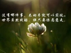 2. 也许我们每个人都有一生灿烂一回的渴望,但我们却往往都没有付出更大的努力,在遭遇困难和阻挠的时候,往往接受环境的安排。人生勇往直前的岁月真的太少了。如果,用一生定要美丽一次的心情去努力和坚持,我们都会比现在过得更好吧!