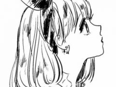 第三步:在龙头的位置往下画出一根棍子,一个带着厚帽子的小孩正双手举着支撑龙头的这根棍子