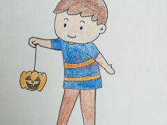 万圣节简笔画图片,小孩提南瓜灯简笔画