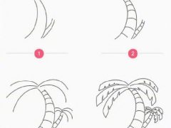 椰子树简笔画教程,弯弯的椰子树