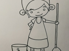 打扫卫生的女孩简笔画