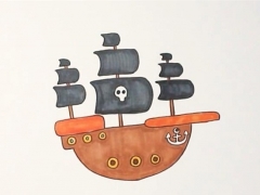 海盗船简笔画,海盗船儿童画图片