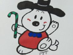 简笔画可爱的公仔,拿着手杖的娃娃
