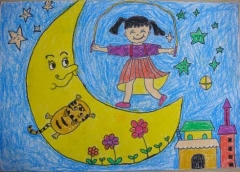 关于月亮的儿童画作品在月亮上跳绳