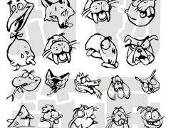 卡通动物简笔画,可爱小动物头像黑白手绘