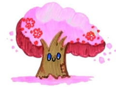 漂亮的樱花树简笔画步骤