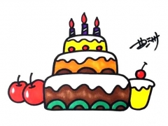 生日蛋糕的画法,生日蛋糕简笔画步骤