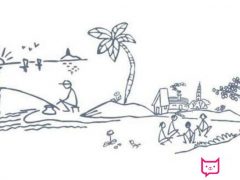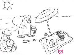 风景简笔画图片,三只小企鹅的沙滩之旅