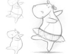 动物简笔画图片,跳舞的河马