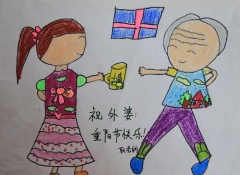 祝外婆重阳节快乐儿童画作品