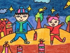 新年快乐儿童画,关于新年的少儿绘画