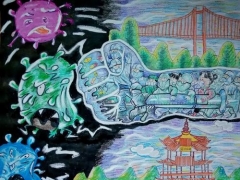 众志成城抗击肺炎疫情儿童绘画作品