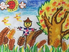 秋收的麦田 简笔画 获奖儿童画